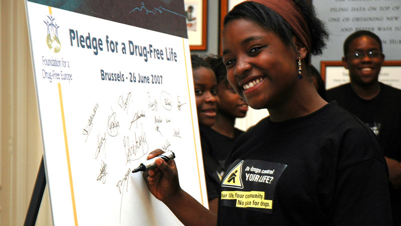 他們也可以在學校操場或當地的社區中心,簽署在布條上。一但授權給孩子後,他們就會把無毒的訊息帶到各個角落。一個人簽署《無毒誓約》後,他們就參與了創造無毒世界活動的第一步。數百個或數千個簽名,不論是在公開場合展示或在呈遞給政府官員,都會創造了極大的影響力。全球數百萬各行各業的人,不論老少,都已經簽署《無毒誓約》,保證過著遠離毒品的生活,並推廣遠離毒品的生活方式。