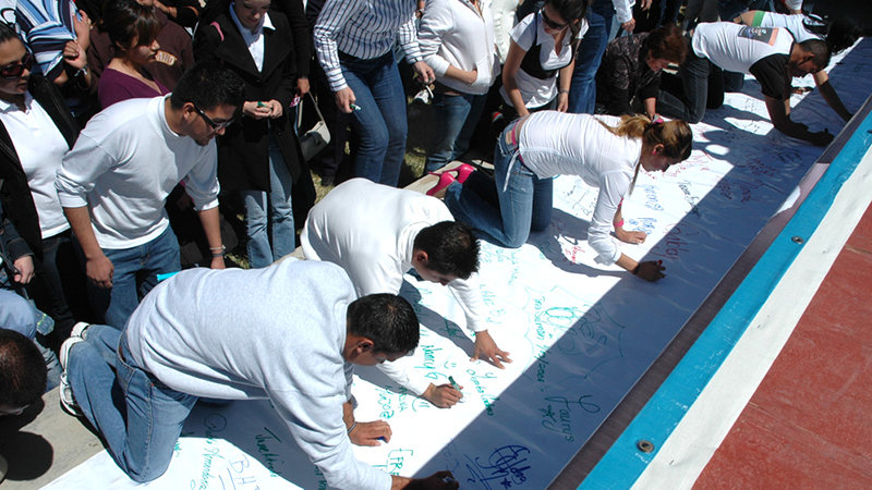 這就是基金會預防活動的目的。孩童簽署誓約,承諾要過著遠離毒品的生活,接著鼓勵他們的朋友和同學也一起加入,建立無毒生活和安全社區的穩固基石。